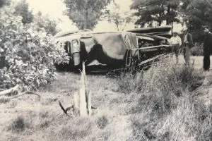 After Brooklands, the Corniche went to France for road testing, but in July 1939 it was damaged by a bus and returned to Vanvooren for repairs and body improvements. When completed, on August 8, it was collected by a Bentley test driver, who headed straight for the Bentley depot at Chateauroux where the testing was based. It was as he neared the HQ that a car pulled in front of the Corniche, causing the Bentley test driver to swerve and hit a tree. The car rolled onto its side, causing extensive damage.