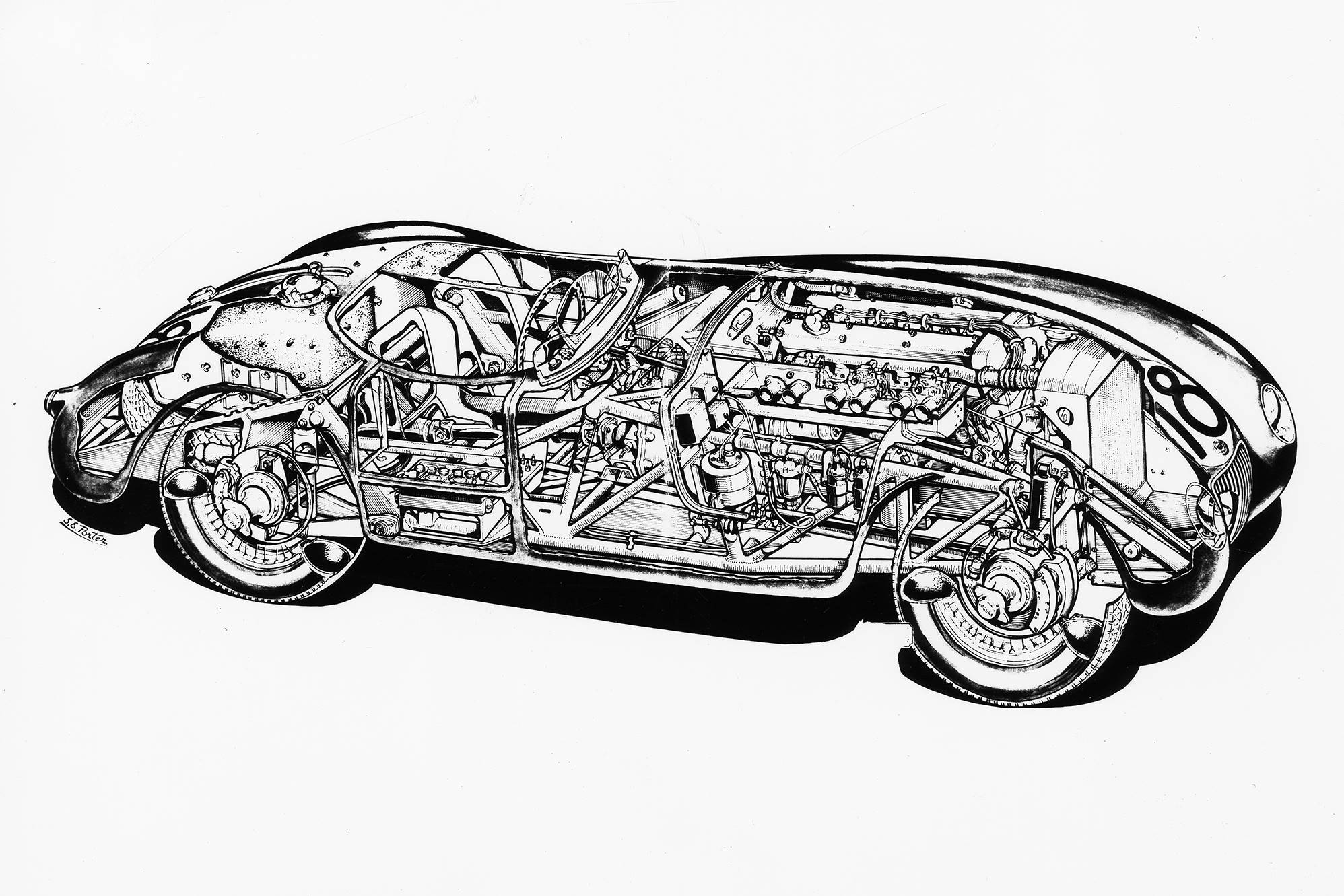 The team used engineering drawings and company records from the C-type development team of Malcolm Sayer, Lofty England, William Heynes, Bob Knight, and Norman Dewis. Each step gives the 2022 car the authenticity of the 1953 model.