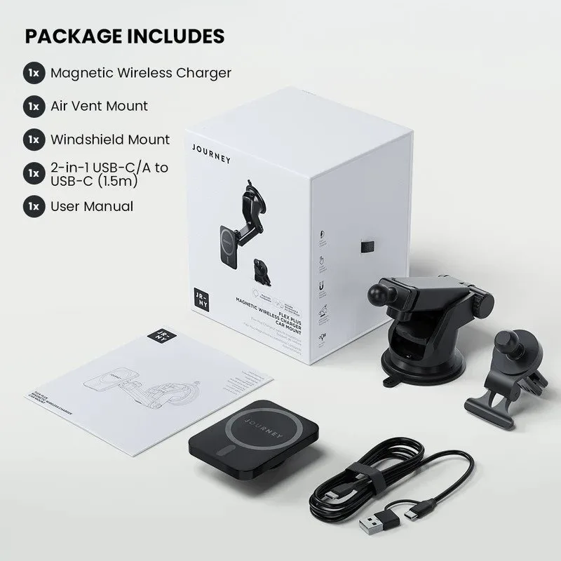 Journey Magnetic (MagSafe) Wireless Car Charger with Flex Plus Mount:
