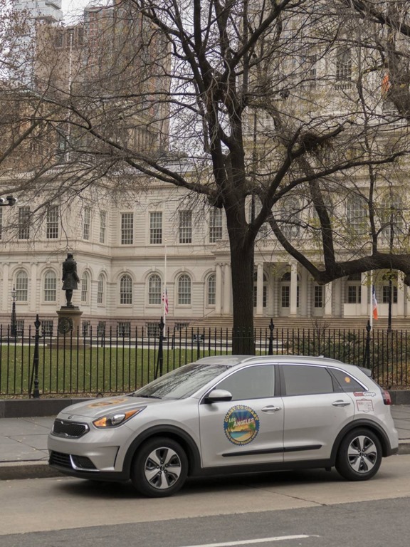 (SEOUL) December 16, 2016 – Arriving at New York City Hall in downtown Manhattan, the 2017 Kia Niro officially received a Guinness World Record® title for the lowest fuel consumption driving across the USA from coast to coast (hybrid car). The new record-setting mark is an incredible 76.6 mpg.