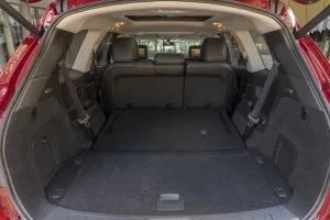 Pathfinder has mighty generous 2,260L of cargo space when 2nd and 4rd row seats are stowed. It’s not quite flat, but near as damnit. Plenty of space camping gear, and associated campers.