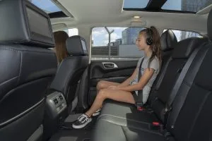 You get tri-zone climate control which includes outlets for the 3rd row. The rugrats will get hours of fun from the screens in the back of the front seat head rests. They can watch their stupid shows with the sound via Bluetooth earphones. You need never hear from them again, unless they start singing along of course. Rear windows are tinted for added privacy.