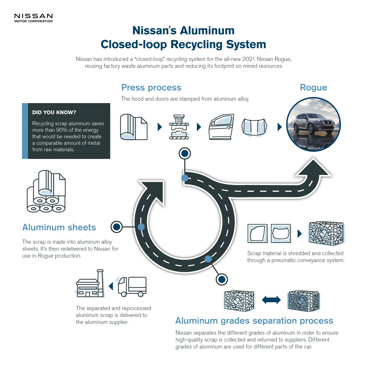 ABOVE: 2021 Nissan Rogue (US model) Closed Lopp Aluminium Recycling