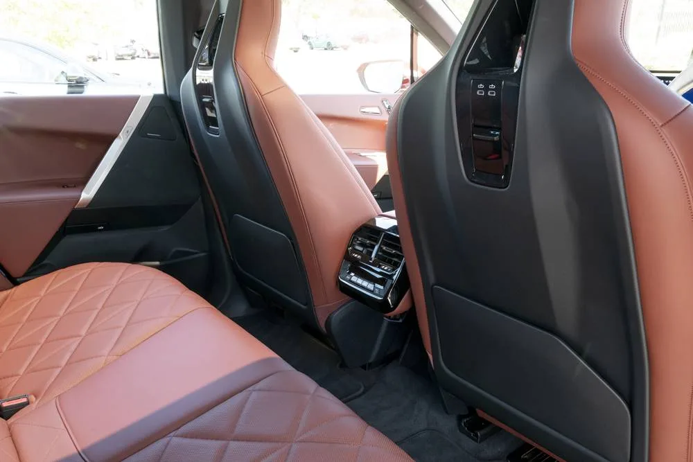 The doors unlock as you approach, and by the time you slide behind the wheel, the climate and audio have primed themselves to provide your personal taste. Starting the iX brings the displays to life, and a gentle pull on the discrete gear crystal puts iX into drive. Another pull activates one-pedal driving, something that takes a while to master.