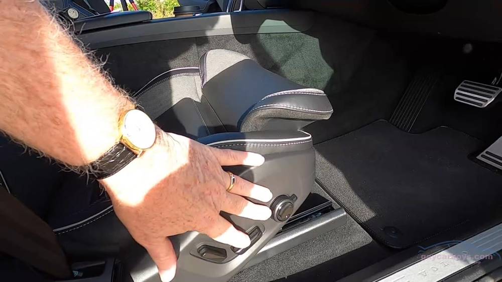 After setting the seats and mirrors, there are 2 memories to keep your preferences. The front bolster and lumbar controls are on the same dial down by the rest of the seat controls. You can extend the bolster for extra thigh support, then tilt the seat back so that you can cruise in comfort.