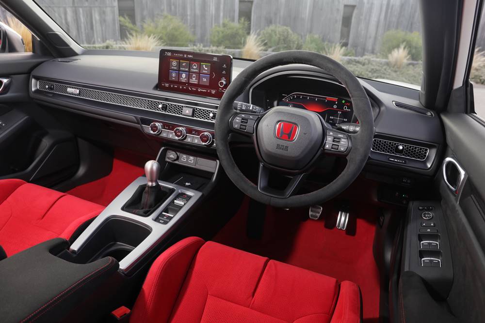 New Civic comes in LX trim as a standard 131kw car, or a 135kw hybrid. Civic Type R rounds off the premium plate offering. The 2.0L Civic Type R comes as a 235kw/429Nm manual with auto rev matching.