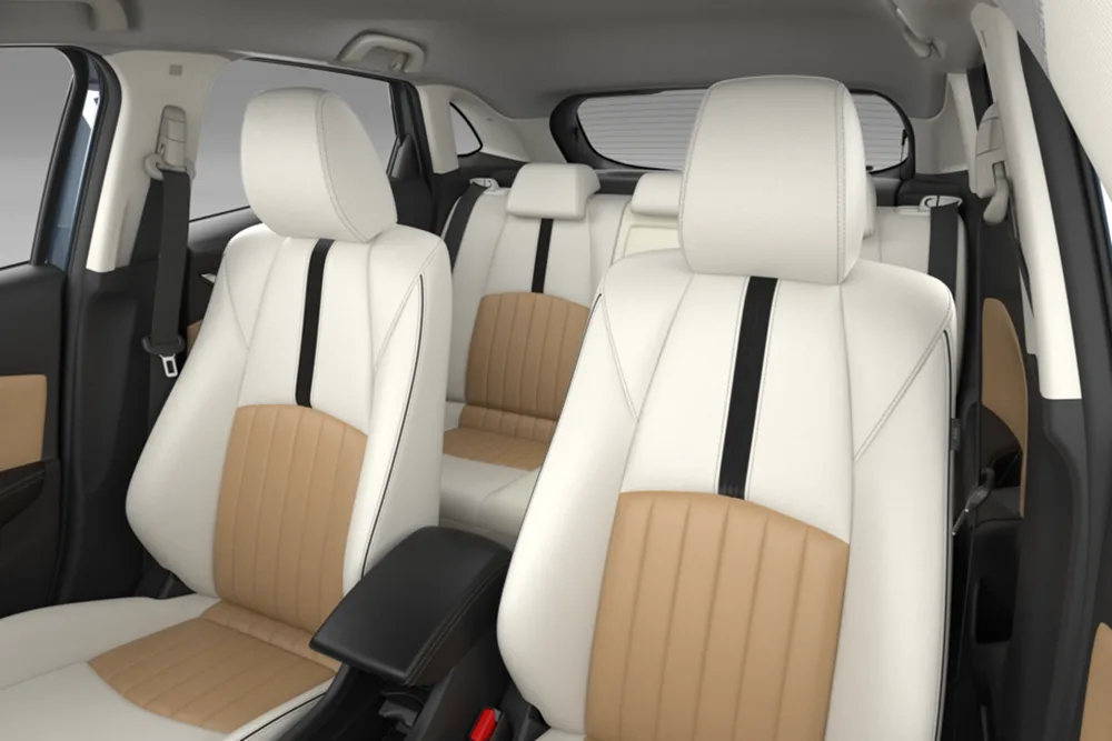 Evolve adds or replaces with: 18-inch machined alloy wheels (previously 16 inches), ront parking sensors. Premium white leatherette and tan suede upholstery adds unique character to the Evolve’s interior.