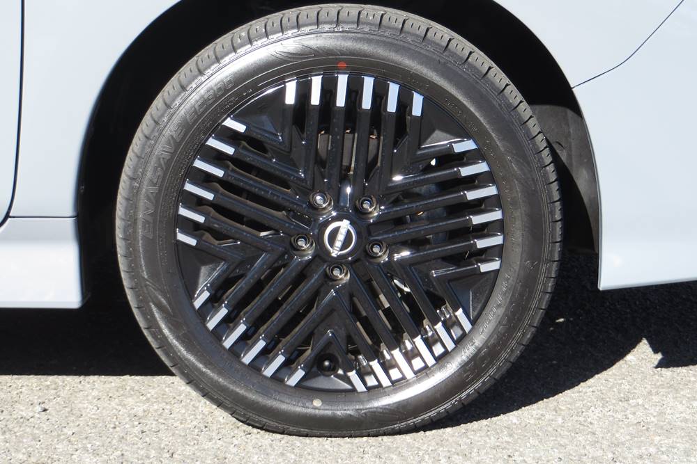 The MY 23 Leaf + still has 17” alloys, but they now have a weird pentagonal lined pattern in them that makes them look like board game tokens. They are ghastly so GET. IN. THE . BIN.