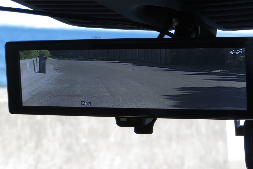 The rearview mirror now acts as a display for a small camera mounted in the shark-fin aerial, and the reversing camera displaying down in the centre stack has predictive lines.