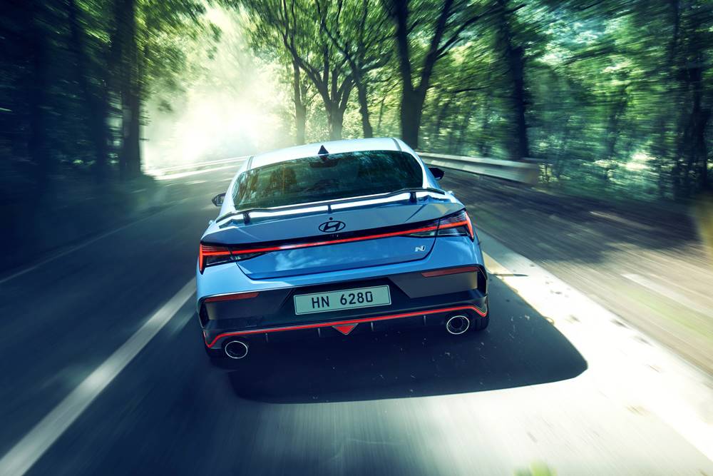 The i30 Sedan N has received a subtle make-over of the front and rear bumpers, red detailing on the sides, and the new boat tail detail at the rear. The front bumper directs cooling air across the brakes, aiding on-track performance. A rejigged grille guides air to the radiator for better cooling without affecting the aerodynamic performance.