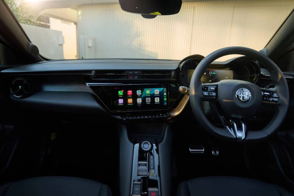 Wireless Apple CarPlay and Android Auto come standard, as does My Alfa Connect, letting you monitor everything from charge status to climate settings via your phone. Ambient lighting, spiga-stitched massage seats, and driver-first ergonomics round out the Junior’s cabin with just enough flair to feel special, if not extravagant.