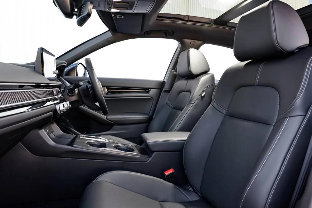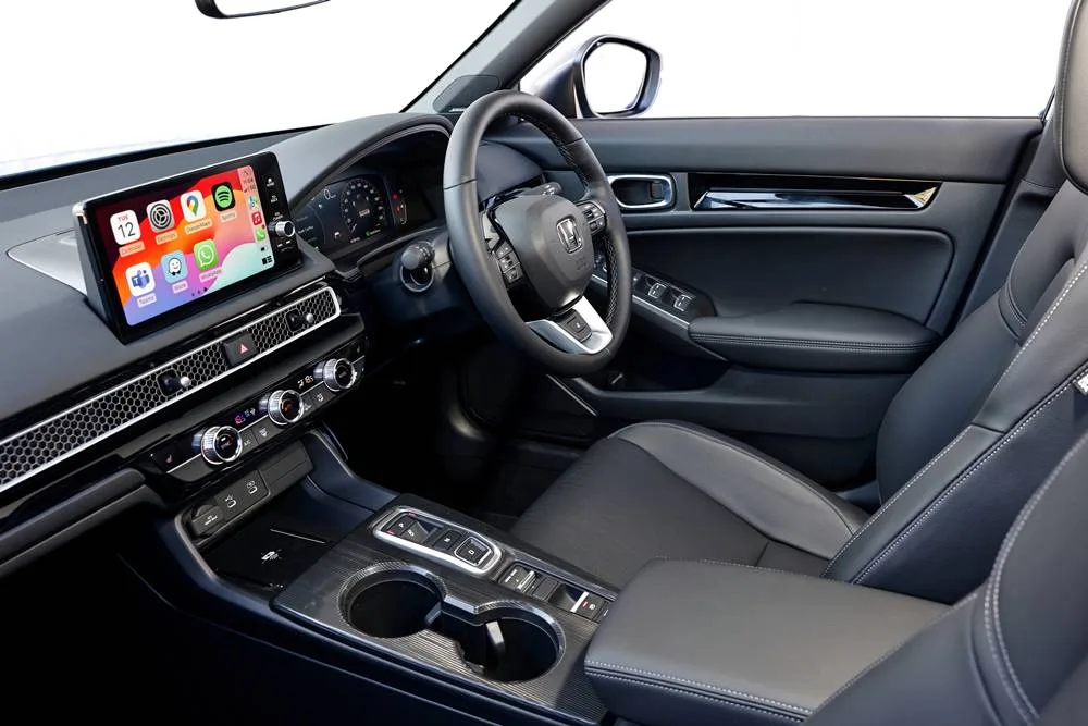 Accord has the same hybrid system as Civic, but is tuned to nippier 152kw/335Nm. Civic seems to have bought tickets in “the gods” by scoring only 135kw/315Nm. Although Civic feels eager, it doesn’t smack you upside the head. Despite this apparent oversight, Civic is wonderfully smooth, putting the “grunt” to the front wheels through an e:CVT.