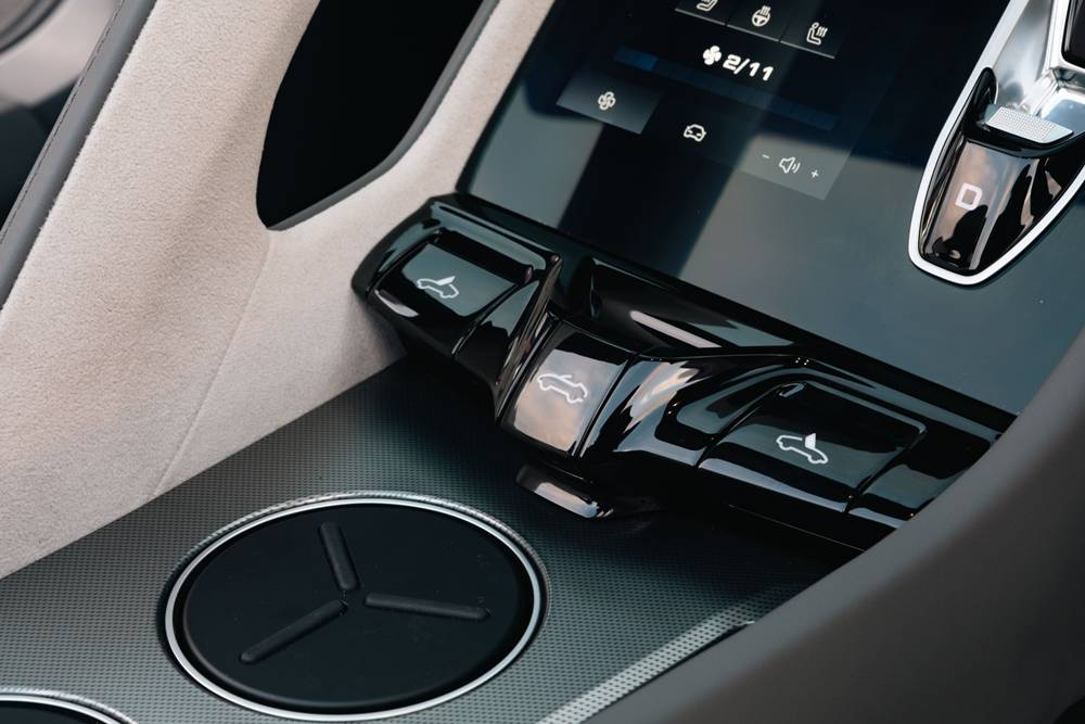 Now, let’s talk performance. With dual motors pumping out 375kW and 725Nm, this electric stunner launches from 0-100 in 3.2 seconds. With launch control. Without it? She’s more storytime than speed demon. You’ll want Sport+ activated at all times — just ask Nico, who cooed, “It’s pure theatre, and I’m here for it.” Grip is impressive, steering is firm, and regen braking is adjustable via paddle. But don’t expect Lotus agility. This gal weighs over two tonnes and corners like a glam cruise liner. Luke, ever the track boy, put it best: “It’s got guts, but you feel every kilo in the bends.”