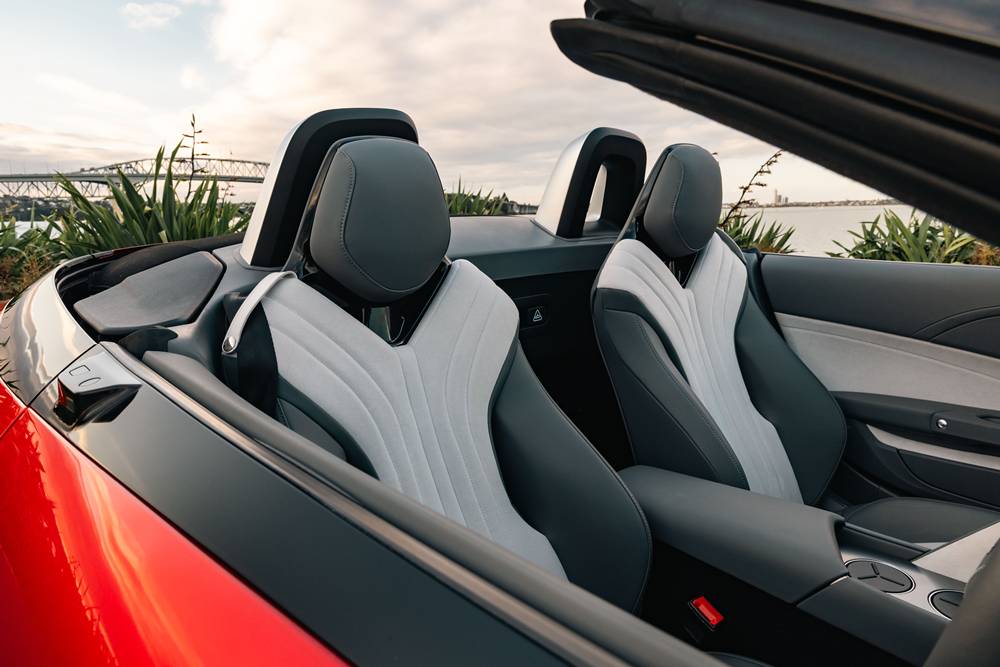 Ride comfort is plush and composed — just right for a Sunday run through the Royal National Park, top down, glitter in your hair. The roof is clever, too — the front section is metal under fabric, offering some bird-strike insurance when parked under a flight path. And unlike the MGs of old, the rear window is glass. No shortcuts here.