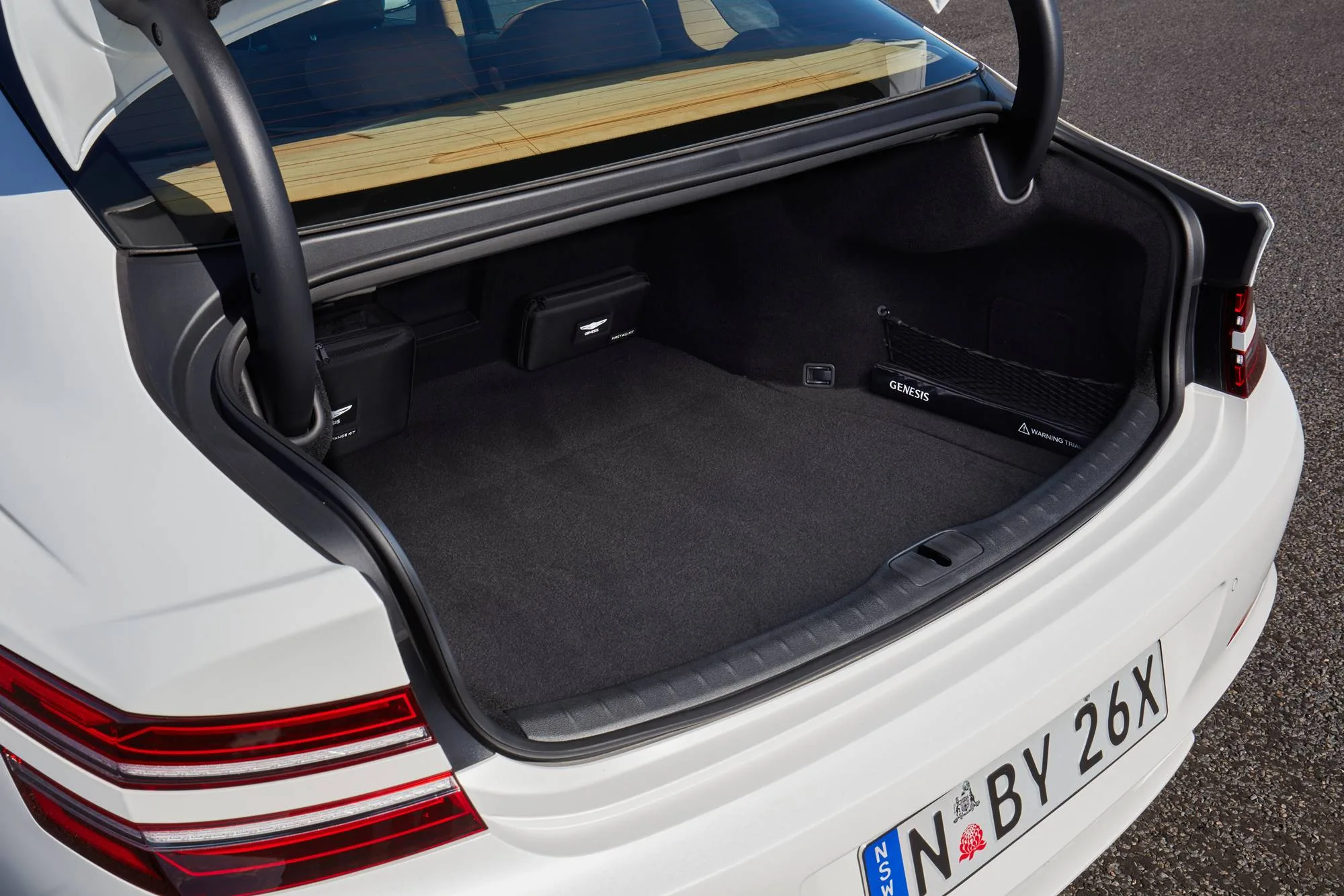 Ethan grew up not far from Wiseman’s Ferry, and took us along the river to his secret spot. There we sat, the Genesis a few metres away. Max squealed as the boot magically swung skyward. He’d been standing near the arse end of the car with the key in his pocket, and a few beeps elicited a grand opening.