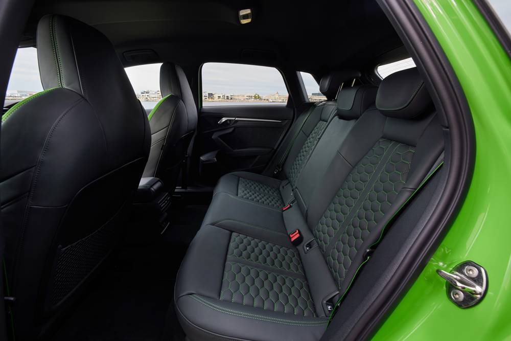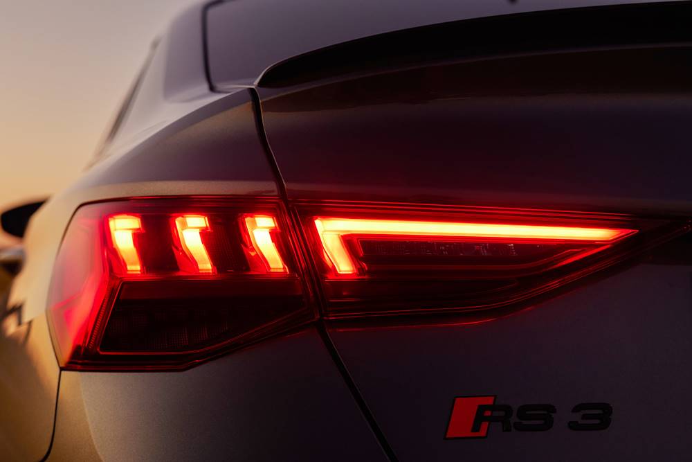 Highlights see metallic or pearl effect paint, electronically opening and closing boot (Sportback), as well as heated, folding and dimming exterior mirrors with memory. Inside, wireless Apple CarPlay is a welcome addition, as is the Head-up display. Electric front seats with 4-way lumbar support and memory function ensure comfort matches the driving scenario at all times, while colour ambient lighting provides a sophisticated cabin character. The folding rear seat backrest (40:20:40) ensures that the new RS 3 is as fit for domestic duties as it is for the racetrack.