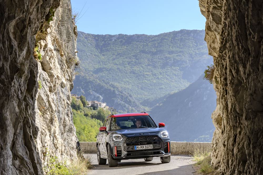 MINI JCW Countryman uses 12 ultrasonic sensors and four surround-view cameras to provide driver assistance systems with Level 2 driving automation on the Driving Assistant Professional option package.