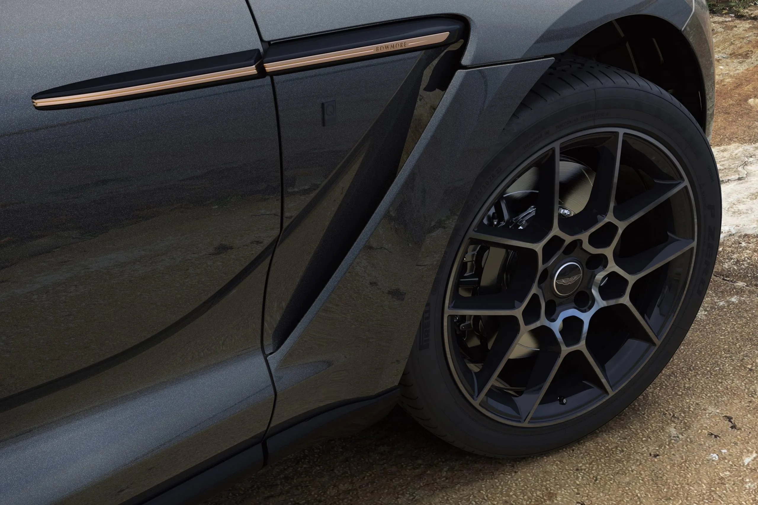 Optional black brake calipers provide a subtlety to the smoked wheels and the overall elegance of the exterior is highlighted by both script and wing Aston Martin badges and Q by Aston Martin fender badges.