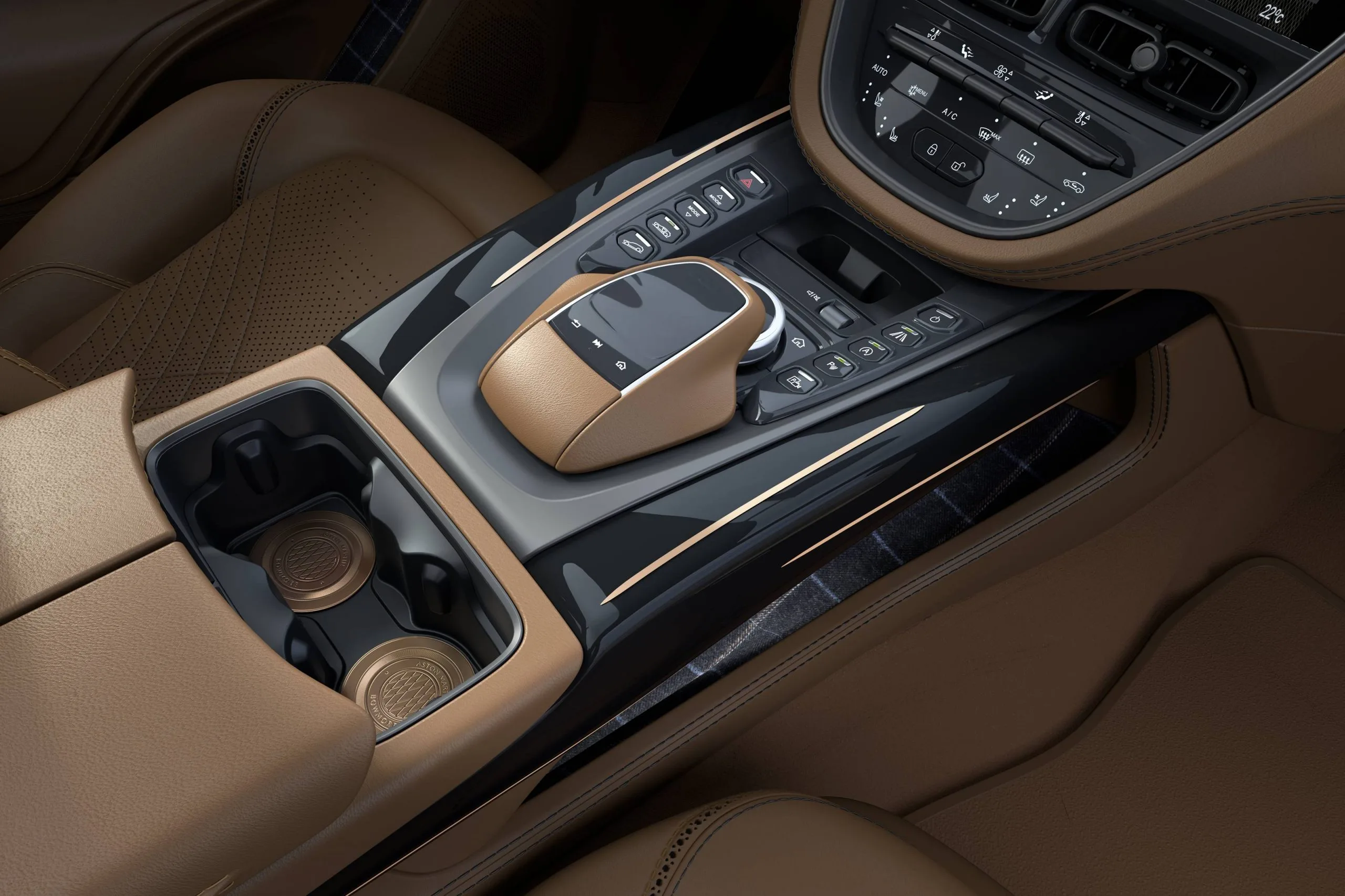 In addition, the interior holds many Q by Aston Martin design details such as polished copper cupholders, and sill plaques, made of recycled copper from the original Bowmore still. The gloss black centre console trim inlay features bespoke hand-laid, copper foil detailing. Each car comes with a selection of specially designed Q by Aston Martin accessories such as a Bowmore tweed picnic blanket and leather holdall.