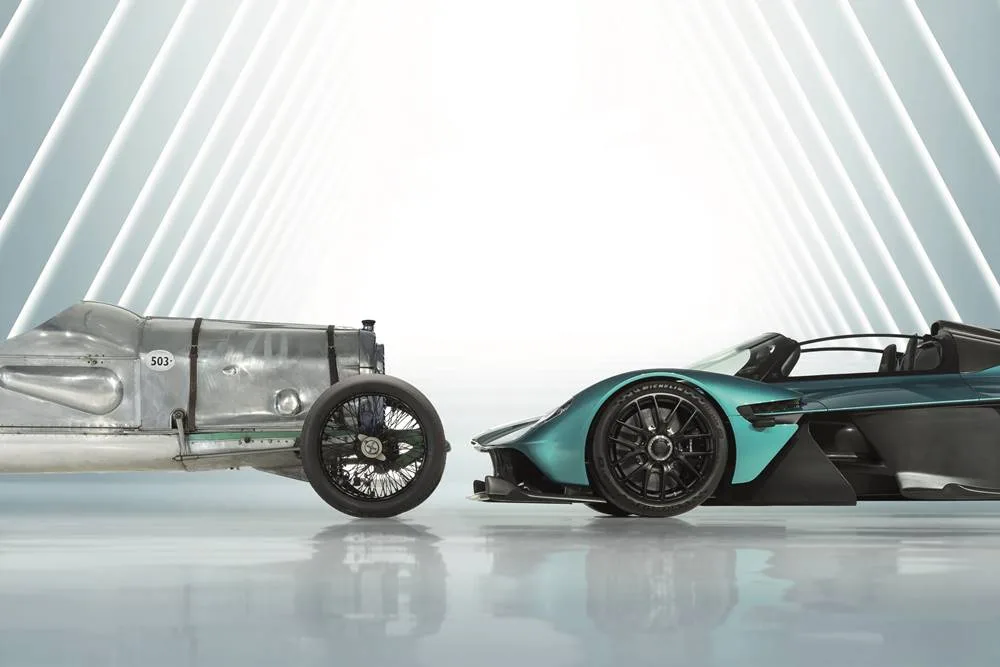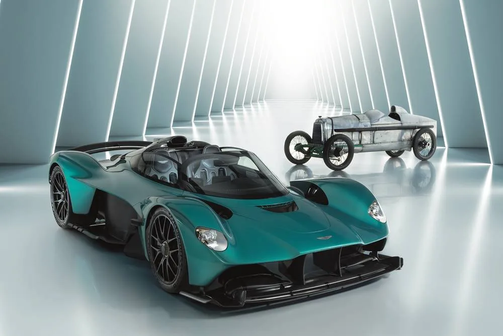 ABOVE: Aston Martin 1923 racer Razor Blade, Aston Martin Valkyrie hypercar-110 Year Anniversary