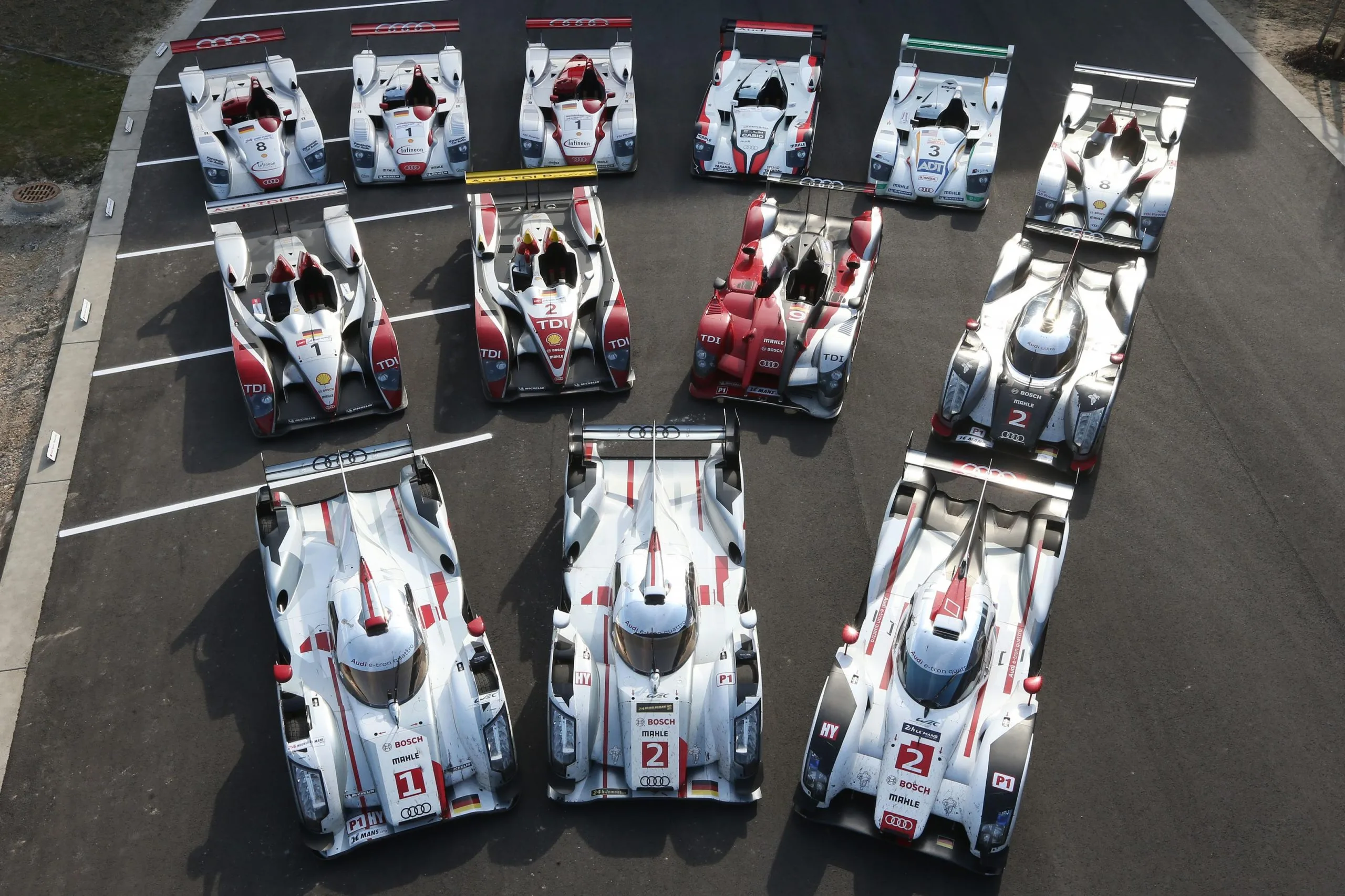 Audi R18 TDI – 2011 During its final six years of competition at Le Mans, Audi won the race on four further occasions, taking its victory tally to 13 in just 18 years. In contrast to the previous open-cockpit R8, R10 and R15 models, the new R18 TDI featured a closed-roof design. It was also right-hand drive, enabling faster driver changes.