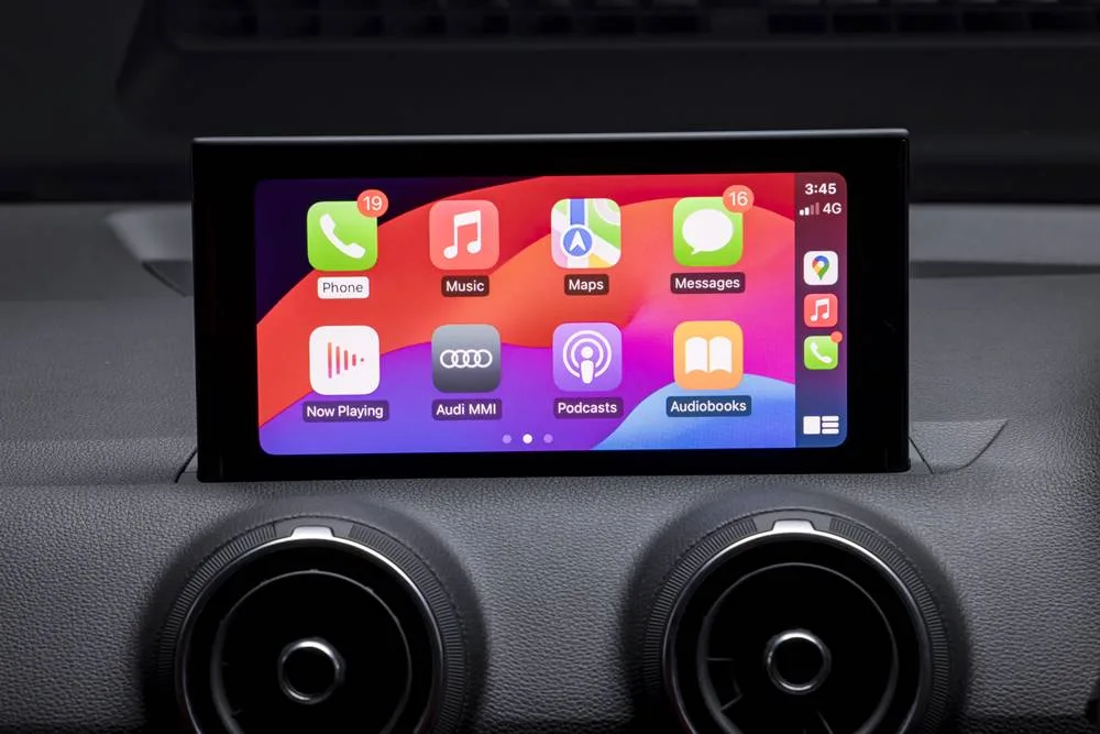 The MMI screen is not a touch screen, and the dial/toggle on the centre console is impossible to when moving. The menus are easy to use, but CarPlay is meant to have a touch screen.