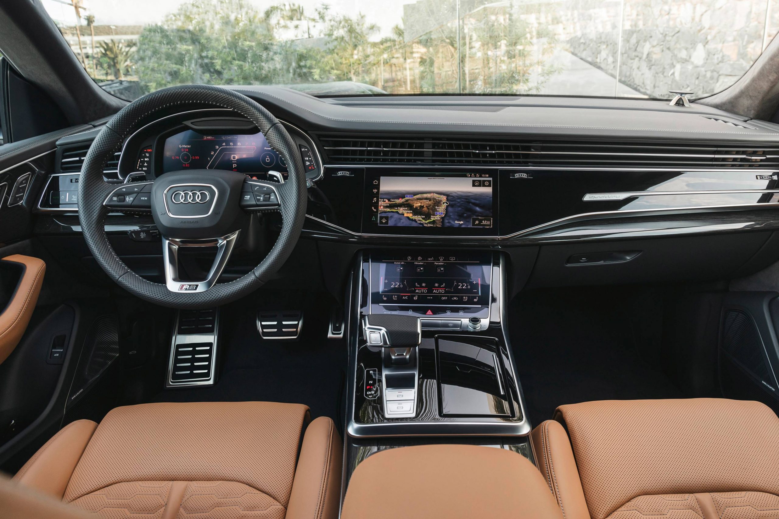 In conjunction with its extraordinary road presence, the all-new RS Q8 provides exceptional levels of comfort and versatility with tremendous interior room for occupants. The luggage capacity can store up to 1,755 litres (with the backrests folded down), while the rear seat can be split 40:20:40, and slides fore and aft to create additional legroom during longer journeys. Inside, the cabin is upholstered in premium Valcona leather with honeycomb stitching, alongside RS sport front seats with ventilation that feature full electric adjustability to further enhance the athletic ambience of the Audi RS Q8. Additional standard equipment highlights, include: