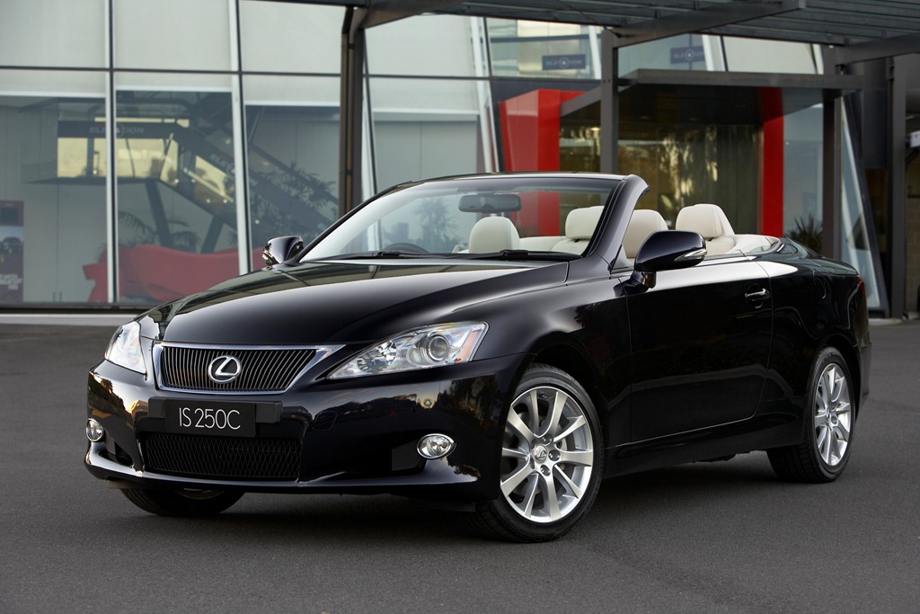 I think the looks of the IS are refreshing and a huge imporement over the first model but you’d have to look hard to notice the mid model updates. It’s a little fat around the rear wheel area, like all convertibles with metal roofs, so that’s something you just have to suck up. The front has joined the LED-running-light brigade. It’s very Audi-Mercedeseque and the rear similarly has highly-designed LED tail lights. Regardless of whether you like the design or not, there is no mistaking the high-end feel. That feel is even more obvious inside where only the best cows died in the pursuit of first class finishes. Entry is via the keyless entry/start system. I’ve driven a lot of Toyotas with the system which normally works well, but for some reason the test car developed somewhat of a personality and occasionally got a bit tetchy when locking and unlocking and starting. I was left in the carpark at the Lismore Shopping Mall looking more than a little silly. I became increasingly upset as the each attempt elicited little or no response. EEEK! What if it had not righted itself? I’m assured it’s an easily sorted gremlin and was probably a flat battery in the key.