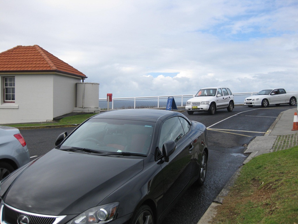 Here’s the Lexus tucked into the corner spot at the Cap Byron Lighthouse. That’s the Pacific you can spy through the fence, but you should have seen the sky in the other direction. Like I said the weather got septic very fast indeed.