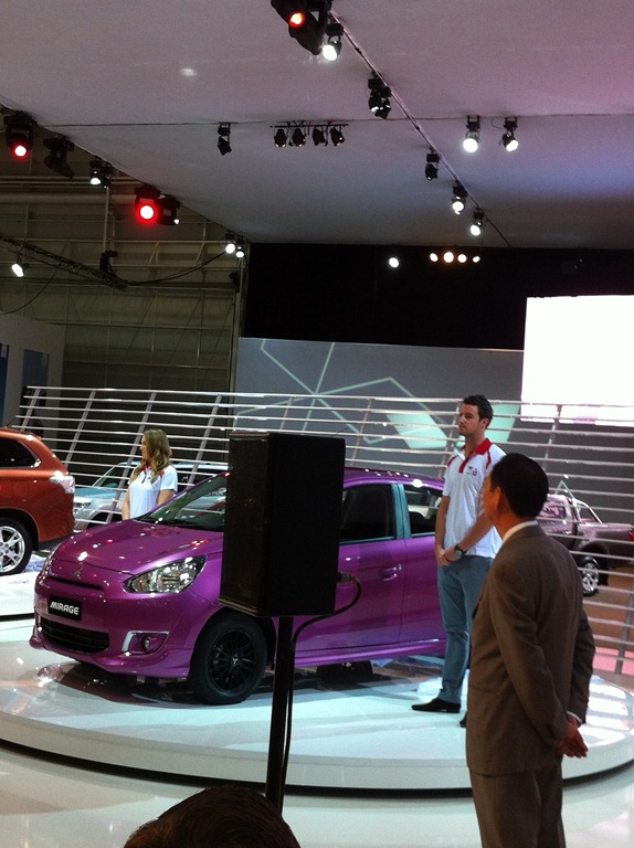 The gorgeous James Magnusson fellow Olympians delivered the new Mirage and a shiny new Outlander. Mitsubishi seem very proud and justly so. The outlander has been an standout in the tight SUV segment.