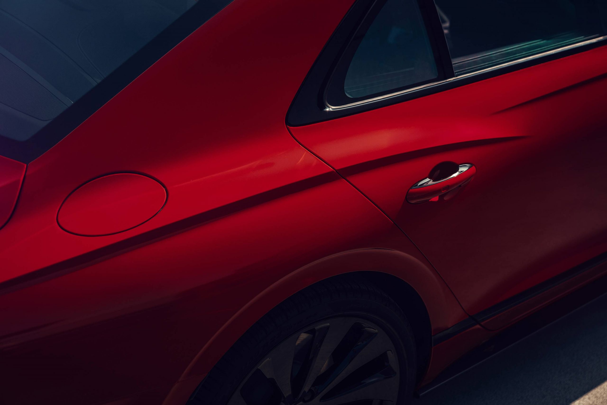 The bold exterior design of the Flying Spur is based on a new and modern vision that is unmistakably Bentley. With a wheelbase lengthened by 130mm compared to the second generation model, the new Flying Spur now has an increased road presence and stronger, more muscular lines that sweep the full length of the car.
