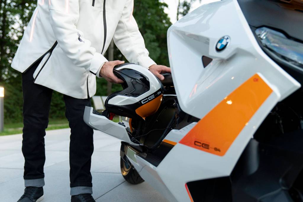 The electrically powered BMW Motorrad Concept Definition CE 04 has been consistently developed and adapted to meet the everyday needs and requirements of the customer. True to the motto “Plugged to life” it combines the customer’s analogue world with the digital one. In conjunction with the corresponding intelligent rider equipment, a holistic, highly emotional and newly conceived mobility experience is created.