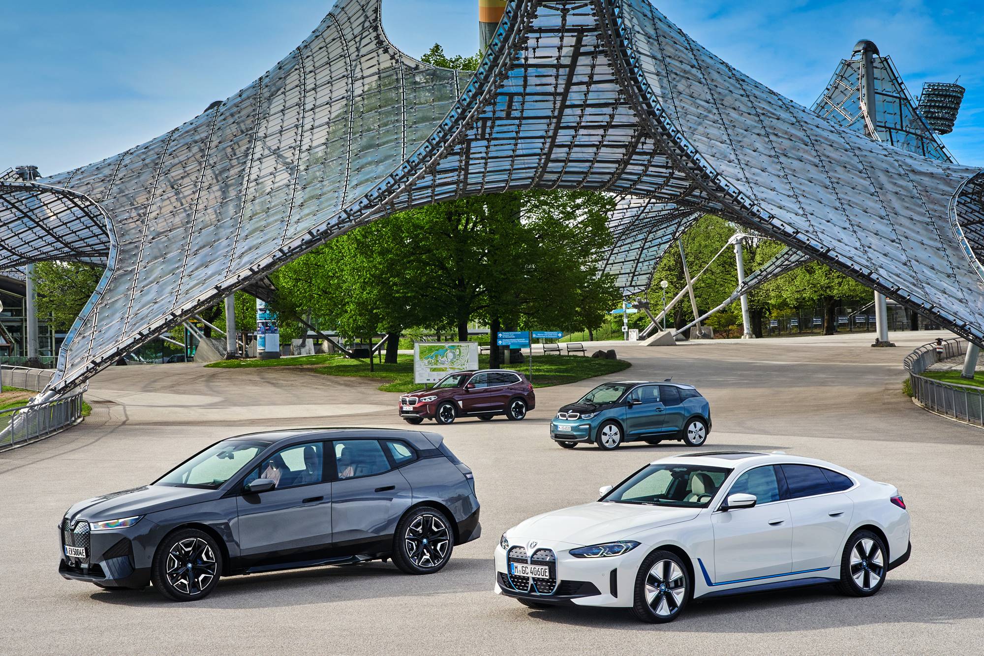 ABOVE: BMW ELectric models inclluding the 2022 i4 Gran Coupe