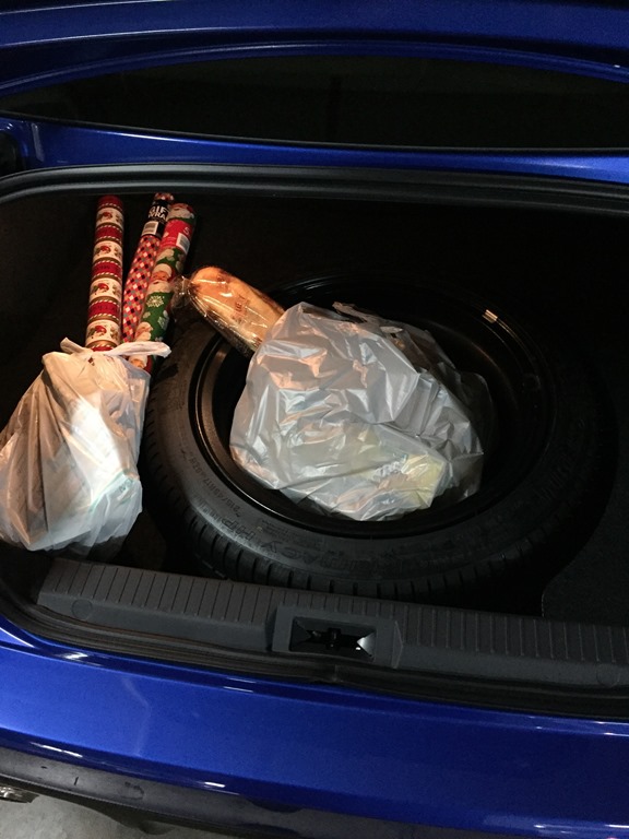 What felt nippy and light in town, transfers to the highway with equal aplomb. Despite her diminutive proportions, the Subaru would go cross country comfortably. You might even enjoy it, just a little. The luggage area isn’t huge, but it can take 4 wheels to a track day with the back seats down. Normally you don’t get a spare but if you do, it protrudes up out of the boot floor. Rather luckily, without the cover in place, the spare tyre makes a perfect spot to stash sundry shopping. It stops your champers from rolling around.