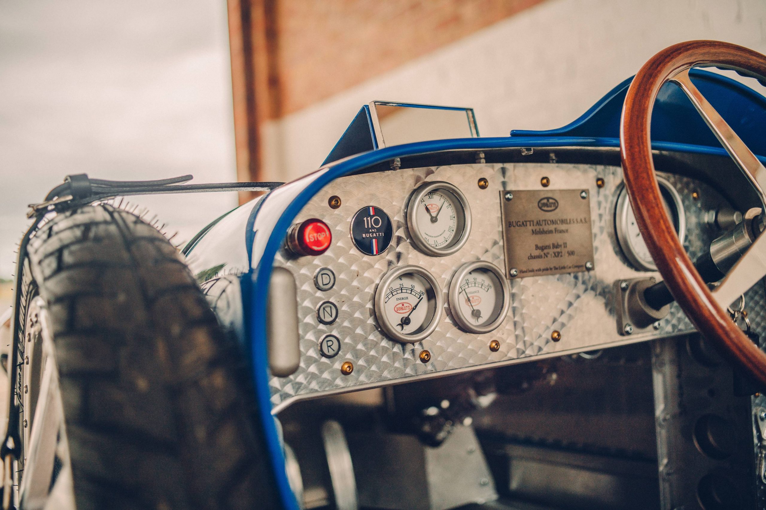 Other features which will appeal to enthusiasts include faithful working replicas of the original Type 35’s instruments, with some adaption for modernity. For example, the fuel pressure gauge has now become the battery gauge and in a nod to the Bugatti Veyron, the oil gauge has transitioned into a power gauge. The scale replica of the famous four spoke steering wheel now has a quick release to make access to the cockpit easier. The adjustable pedals are machined from solid aluminium billet and proudly display Bugatti’s famous “EB” logo, while the fuel pump handle has been exactly reproduced, but now serves as the forward, neutral and reverse selector.