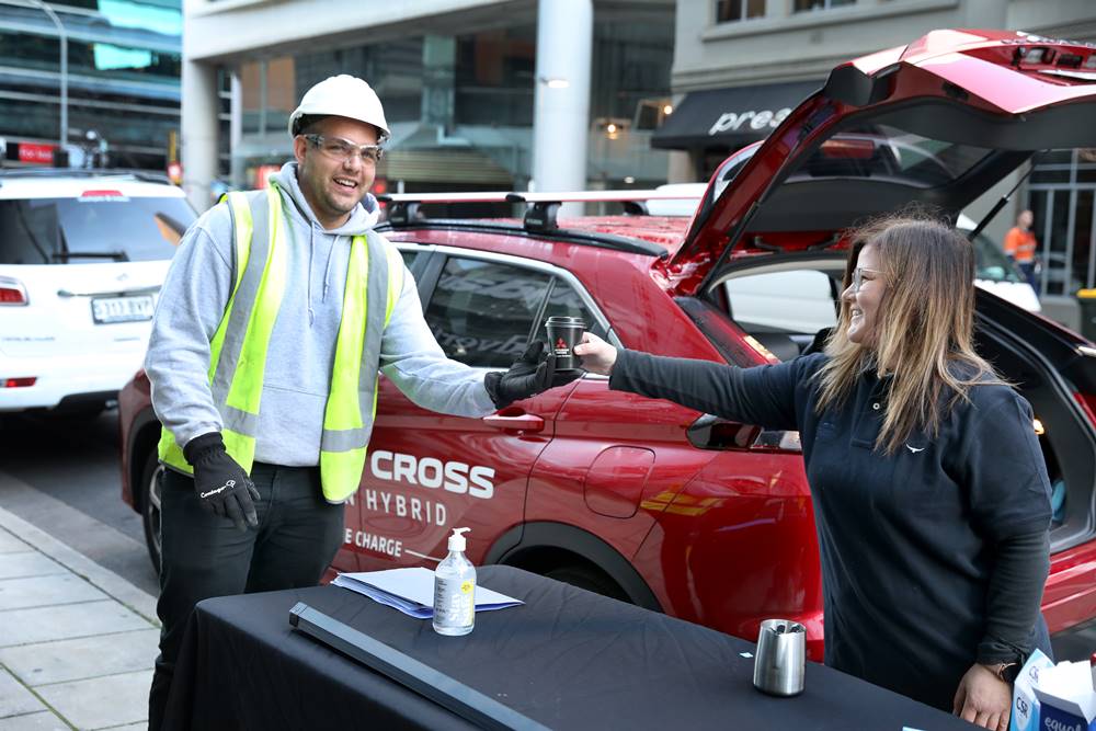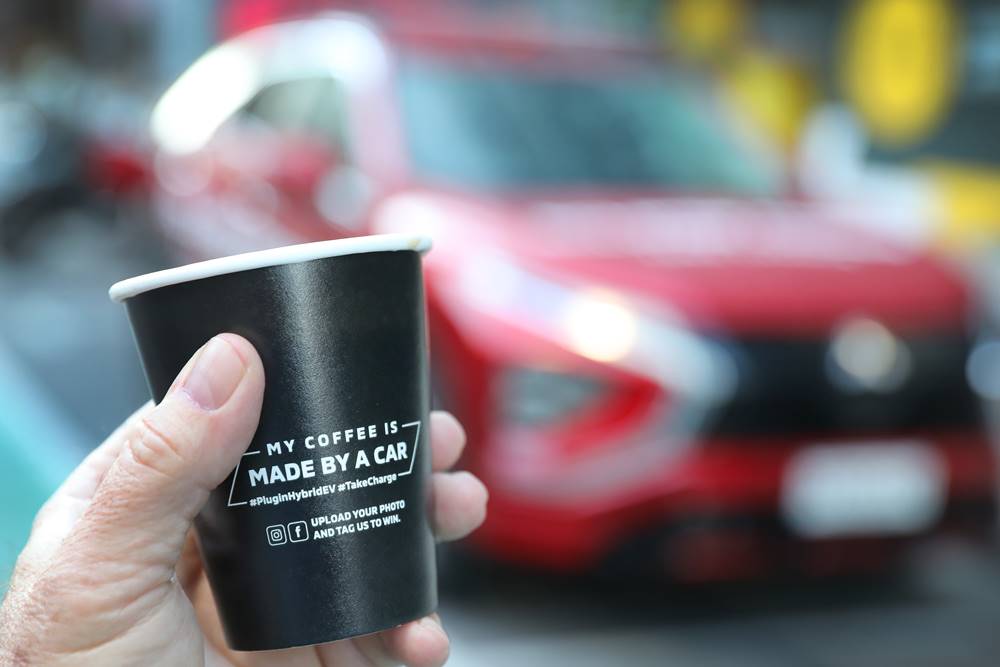 ABOVE: 2021 Mitsubishi Eclipse Cross PHEV – powering a coffee stop