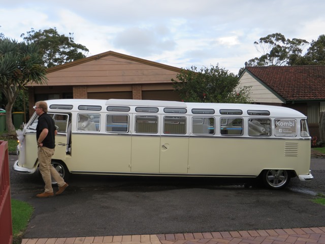 This fabulous VW Kombi is so long it has stretch marks. We were jumping with glee to see this fab limo at a wedding we got sloshed at recently on the storm ravaged central coast of NSW.