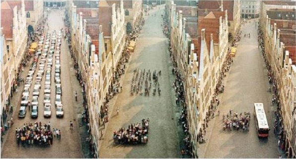 60 Cars, 60 Bike Riders, and 60 Bus Passengers in Munster, Germany.