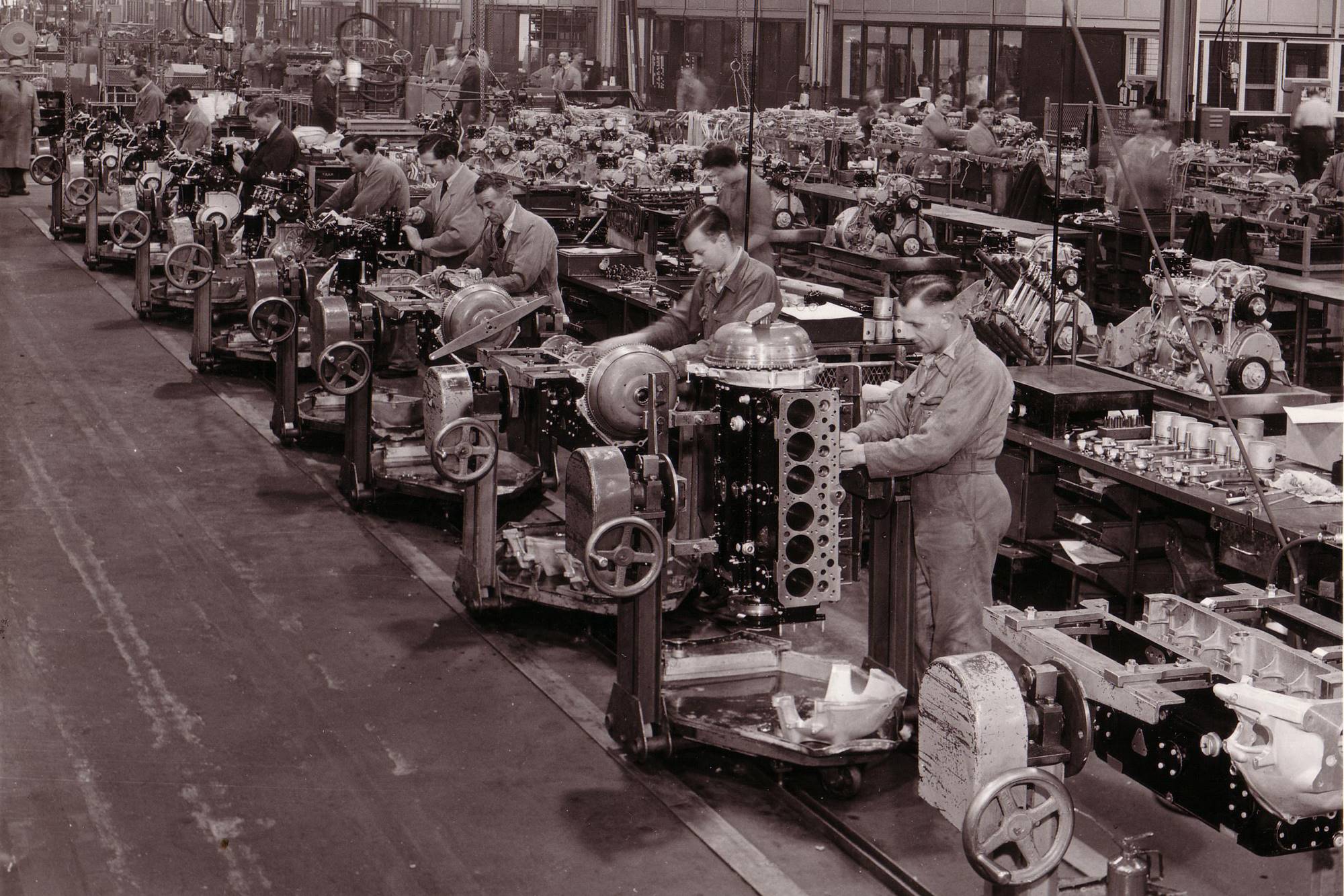 Bentley history can be traced back to 1919, adding the Crewe site in 1938. The Pyms Lane site once a humble potato field, created Merlin aeroplane engines for the war. The factory had good transport links and a merry band of skilled labour. 1943 was the biggest year, with 10,000 colleagues.