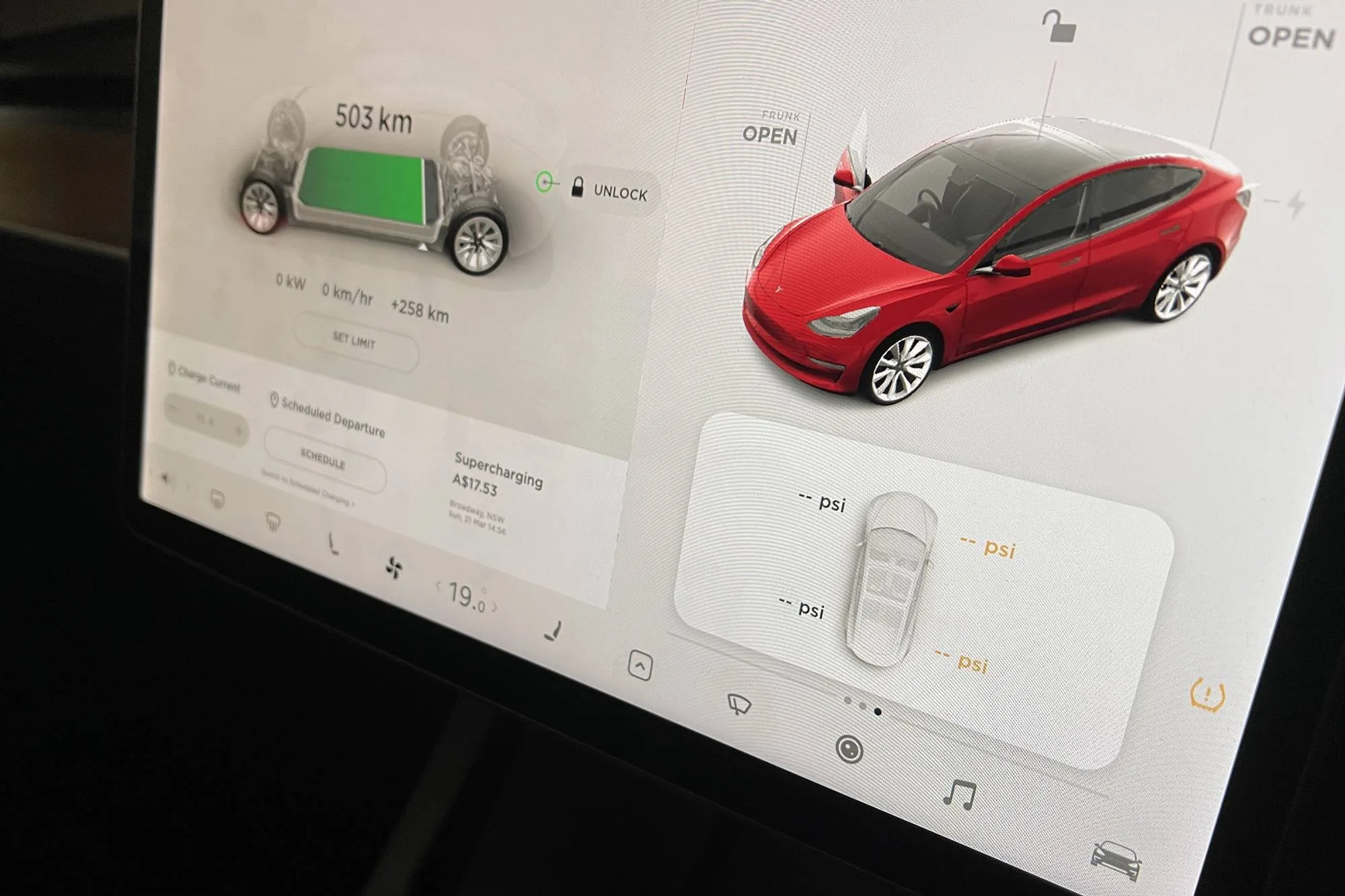 I chewed up 300km of my 501km range. You see, the batteries will only charge to around 80% on a supercharger in order to preserve its life. This is great in theory and will be part of the review.