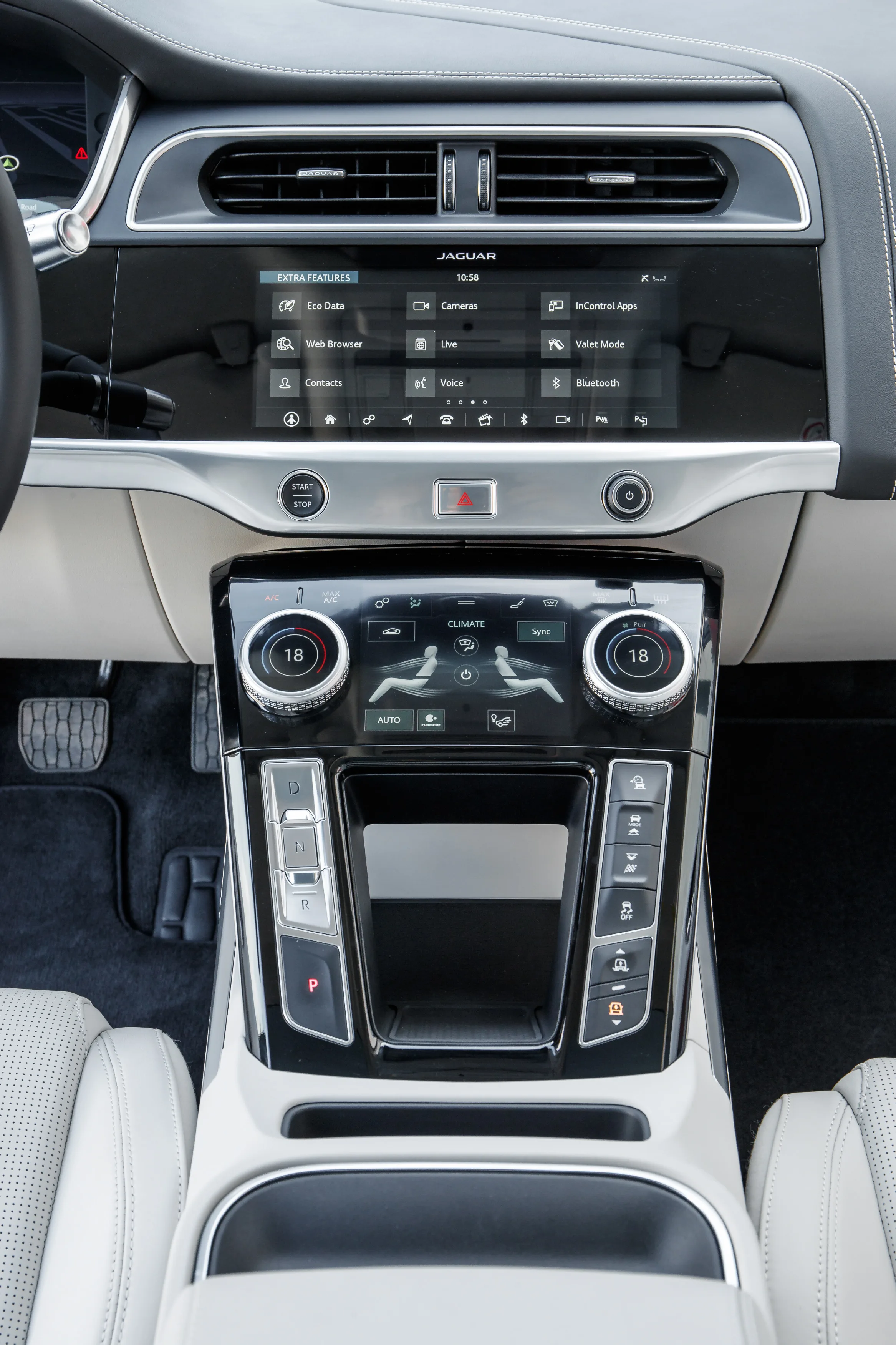 The new Pivi Pro infotainment system is a highlight of the I-PACE’s spacious, luxurious interior. The 12.3-inch high-definition virtual instrument cluster, 10-inch and 5-inch upper and lower touchscreens** and multi-function, haptic rotary controllers are matched to crisp, clean, contemporary graphics for an engaging, intuitive user experience.