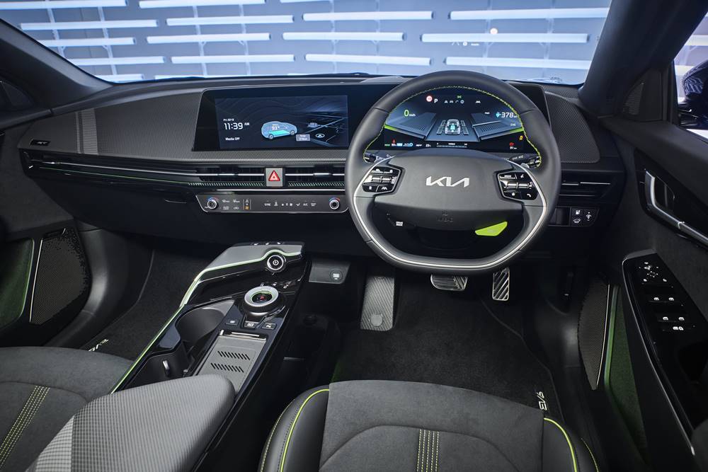 The cabin feels like any of the other EV6 range, but the seats feel much harder. After an hour, you start to shift your bum around a bit, but all race/sports seats are the same.