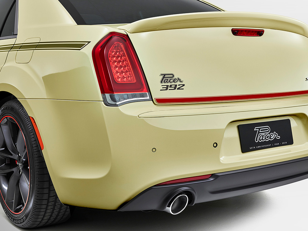 Today, the Wild Yellow Chrysler 300 SRT Pacer tribute car is powered by an even stronger HEMI V8 that produces a booming 350kW and 637Nm of Torque. All details from the original have been meticulously reproduced. The Pacer 225 decals turned into Pacer 392, which represents the cubic inch of the 6.4 V8 powertrain. The high-powered engine is paired with the advanced TorqueFlight ZF-8-speed automatic gearbox with Rotary E-shift, Launch Control and Rear Wheel Drive.