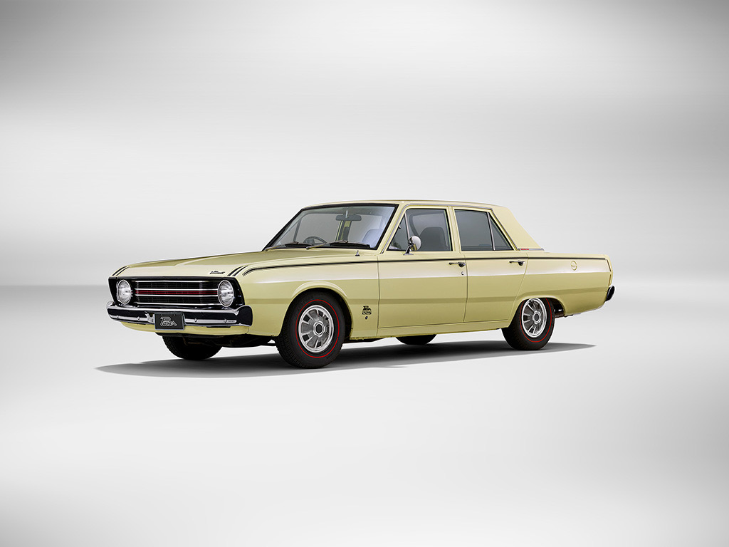 Originally available in three colours – Wild Yellow, Blue and Red – the Valiant Pacer featured black exterior side stripes and red highlights accenting the grille and boot lid. Signifying the performance credentials of the Valiant Pacer’s modified six-cylinder engine, the exterior styling was further decorated with its iconic ‘Pacer 225’ decals.