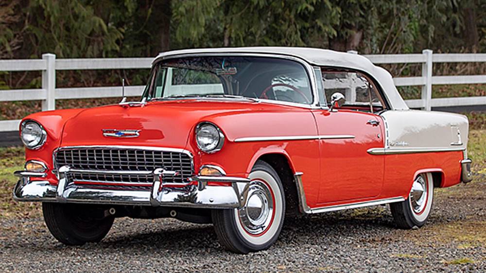 - Chevrolet Bel Air Convertible 1955 a with Gypsy Red/India Ivory exterior and a Red and Ivory interior (Lot S165) and a