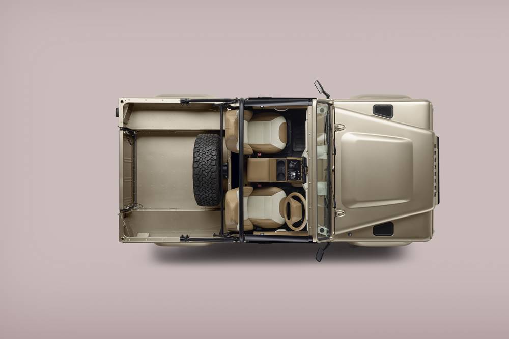The bespoke canvas roof, available in Black, Sand, Dark Khaki, or Navy, is inspired by the final 2016 Defender and includes roll-up side and rear panels, plus an optional ‘Bikini Roof’ for breezier drives. For those who live out loud, there’s a dizzying choice of 49 paint colours, or you can go wild with Land Rover’s match-to-sample service.