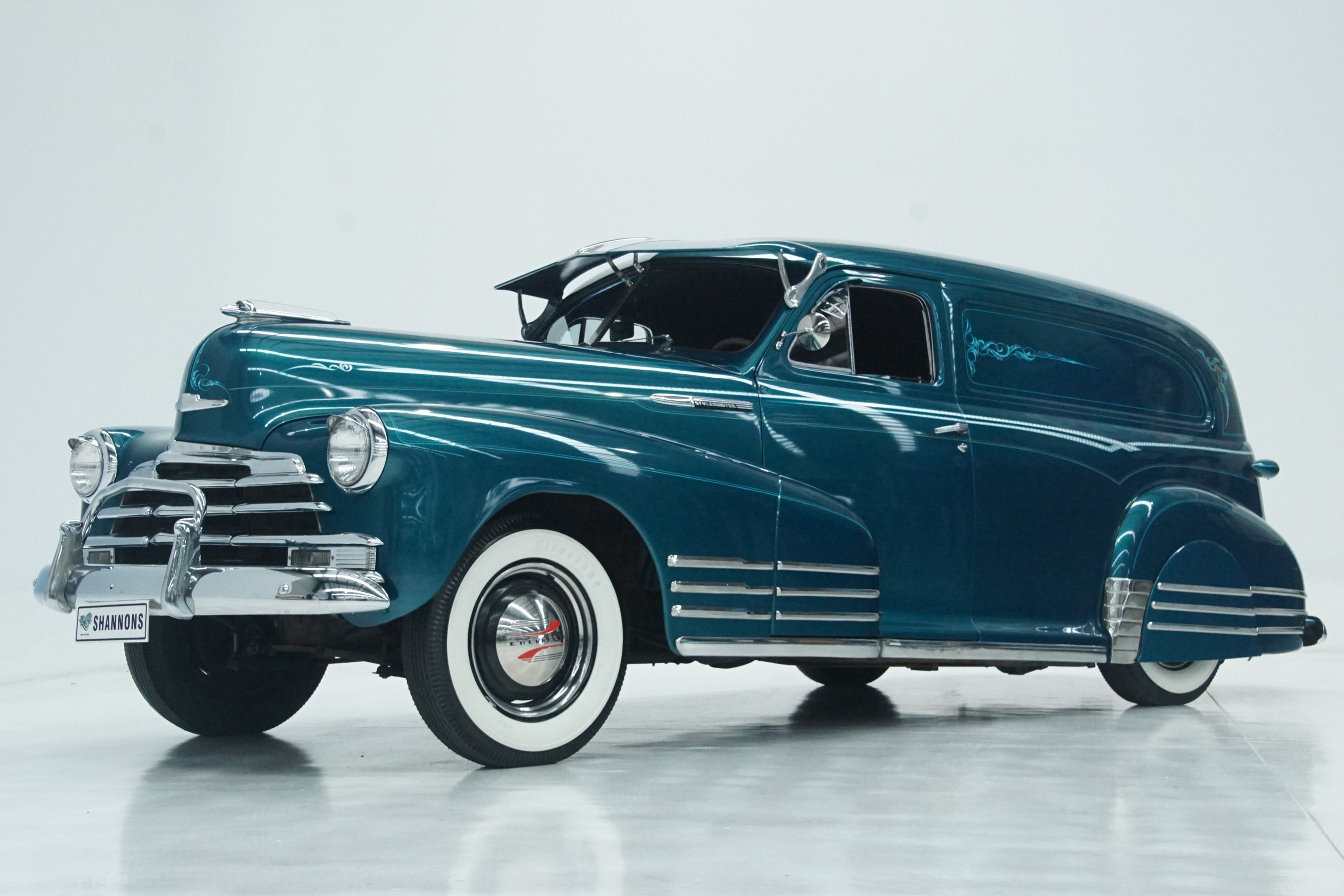 The most stylish of this former blue singlet set is a US-built Custom 1948 Chevrolet Stylemaster Sedan Delivery Van, with its stock body enhanced by a number of custom accessories