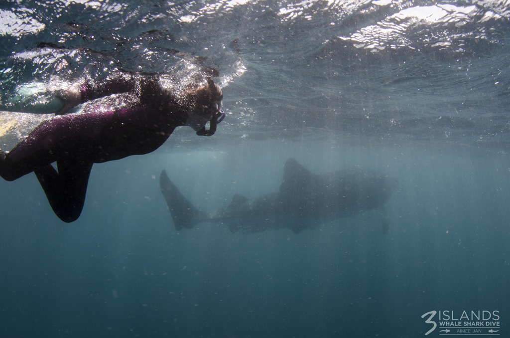 At this point spotter planes take to the skies and point the boat skippers towards the whale sharks and when the skipper yells: “Go-go-go!” 10 swimmers plus a dive leader jump from the boat’s stern and play “spot the fish”. Not hard when the fish is as big as a bus.