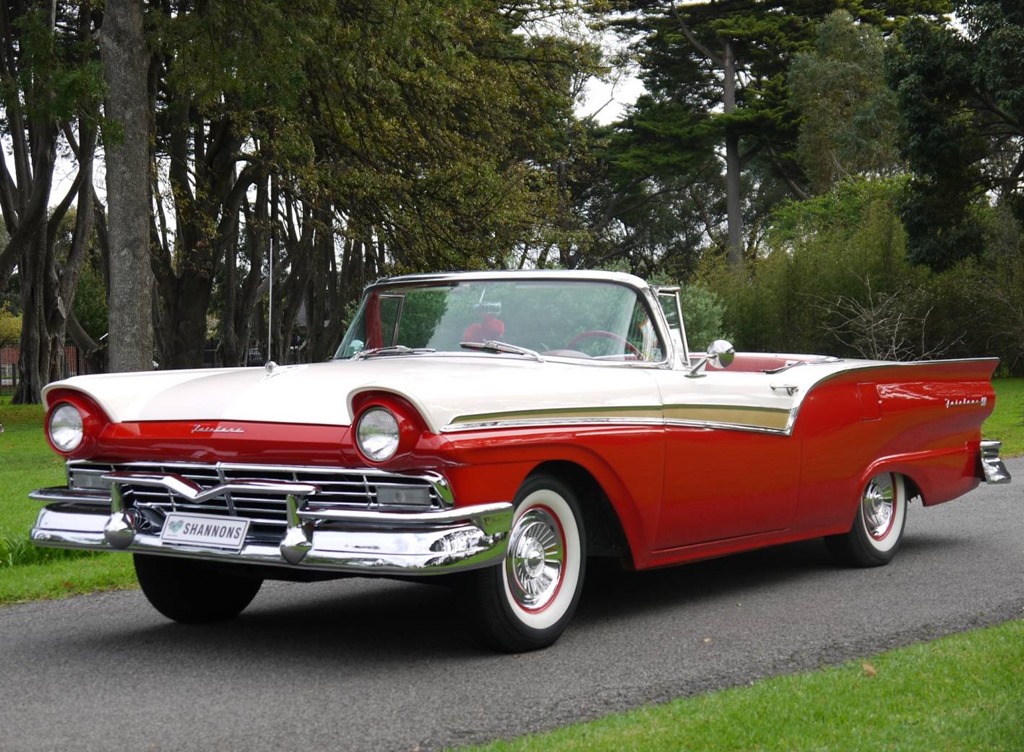 Equipped with the higher-option 312-cid V8 and Ford-O-Matic automatic transmission, the Skyliner is beautifully presented in the period two-tone colour scheme of Flame Red/Colonial White with matching red/white upholstery, making it the perfect cruise car and a rare sight in Australia.