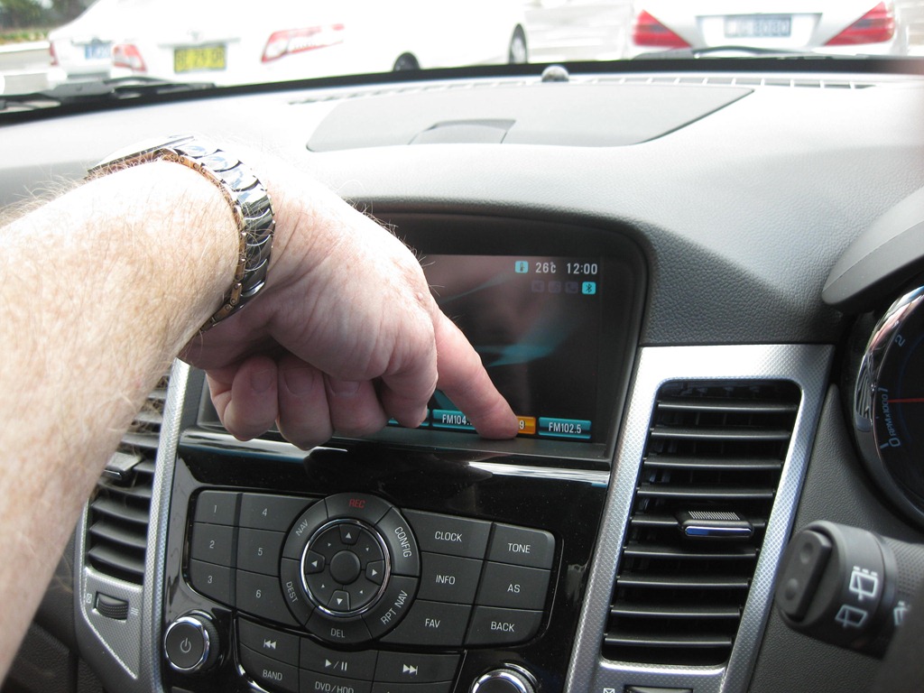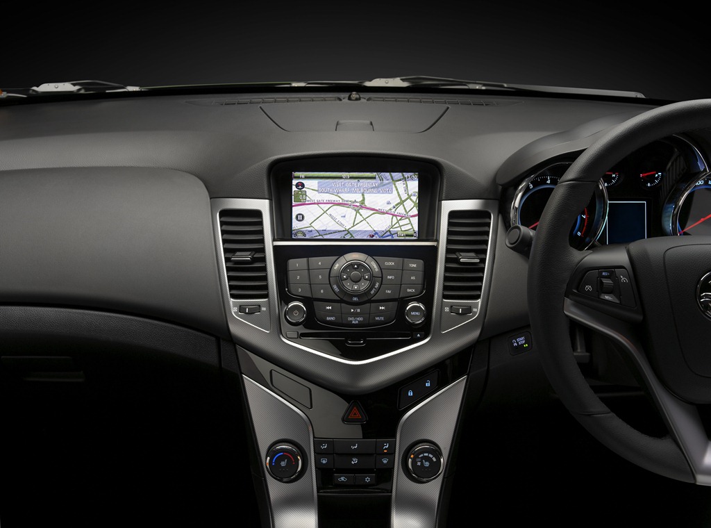 Other than the hatched boot area, the Cruze models differ only in trim. The dash, doors and other plastic surfaces don’t differ much between the bottom and the top of the range. What this means is if you are a cheapskate you can make do with the lower spec model. As with most car makers, the second you start adding options, you’ll quickly add enough to the total to make your eyes bleed. The SRIv gets the top of the line audio but for a car costing over 30k one might expect audio streaming with your bluetooth, but that can’t be had even as an option. Another thing about the infotainment system is the LCD is used to control many of the functions. “That’s good isn’t it” I hear you say. But try changing the radio stations. There’s a button on the steering wheel but should you want to use the buttons on the screen you have to slide your fingers along the recess into which the screen is set. Obviously it’s so far back to avoid the nasty reflections one often gets from bright daylight but surely someone tried using the system during the design stage. If they had, GMH would have given you a bit more space for those pesky fingers of yours.